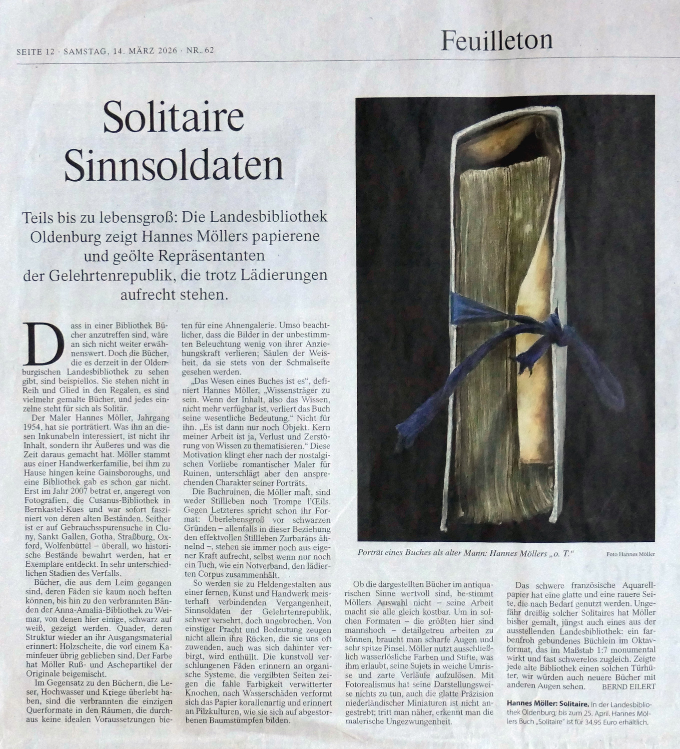 Dass in einer Bibliothek Bücher anztreffen sind, wäre an sich nicht weiter erwähnenswert. Doch die Bücher, die es derzeit in der Oldenburgischen Landesbibliothek zu sehen gibt, sind beispiellos. Sie stehen nicht in Reih und Glied in den Regalen, es sind vielmehr gemalte Bücher, und jedes einzelne steht für sich als Solitär.